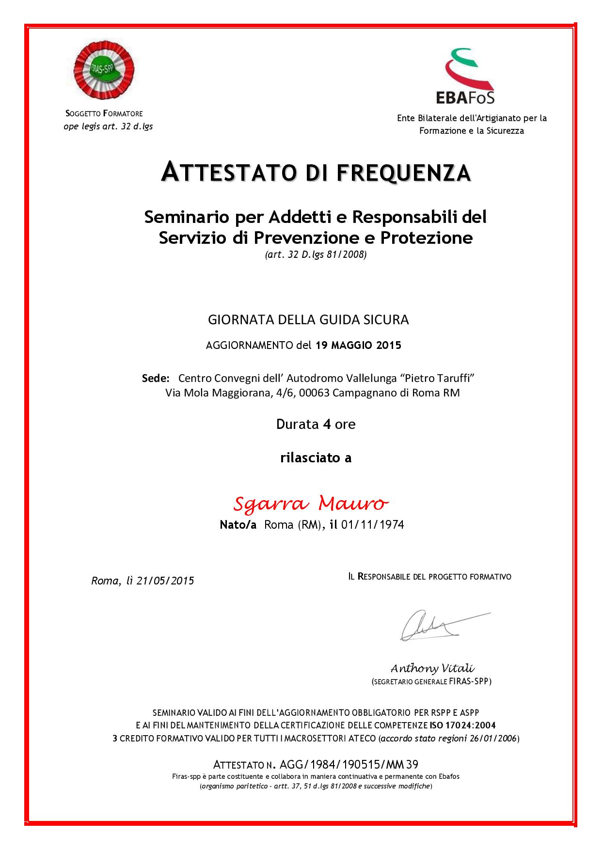 Corso per addetti ALL’USO DI ATTREZZATURE DA LAVORO Accordo Stato-Regioni 22 febbraio 2012 requisito Esperienza > 3 anni sia nel settore della formazione, sia nel settore della prevenzione, sicurezza e salute nei luoghi di lavoro.